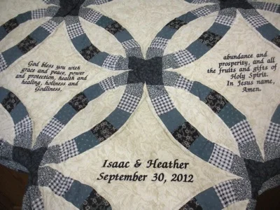 Start with something we use every day such as handmade quilts, baby quilts, throws, quilt wall hangings and handmade pillows. With custom embroidery, make these practical items into custom personalized gifts by adding names, special dates, photos, ribbons, sayings and more.