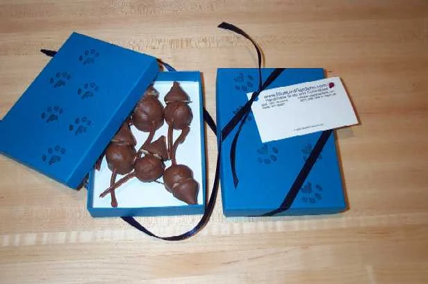 I love to make and give handmade chocolate mice (photo). Chocolate mice are not only extremely easy to make, but you can also have fun with the gift tag!